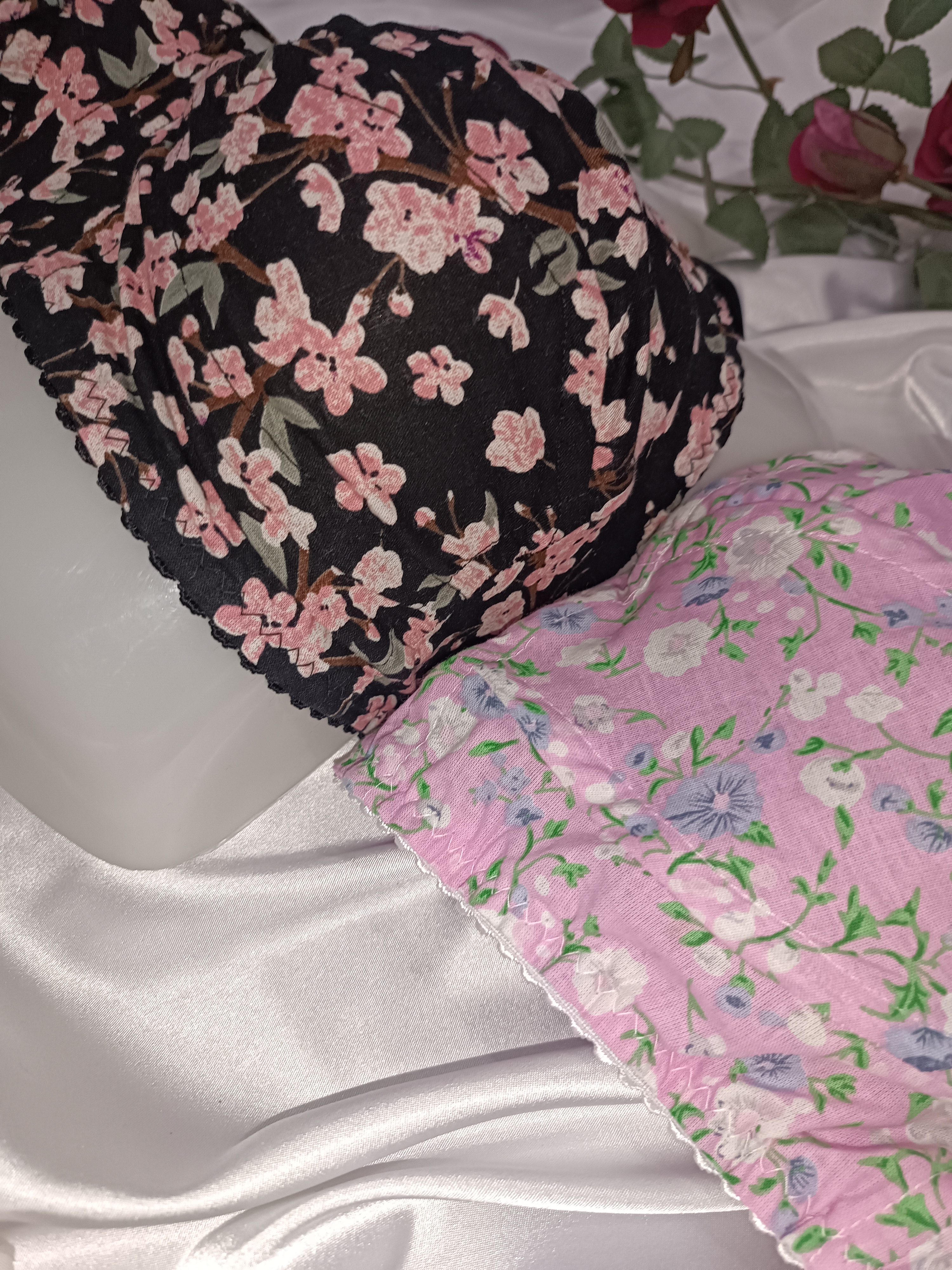"سوتین لعیا کتان نخی صورتی و مشکی: